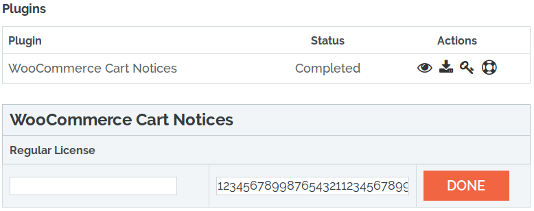 - Click on key icon on right side from plugin name WooCommerce Products Compare