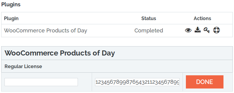 - Click on key icon on right side from plugin name WooCommerce Products Compare