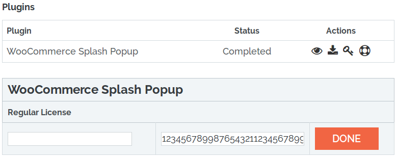 - Click on key icon on right side from plugin name WooCommerce Products Compare