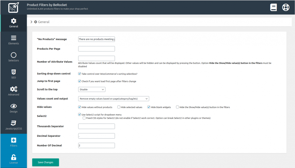 • “No Products” message – a message that will be displayed when there are no products after filtration