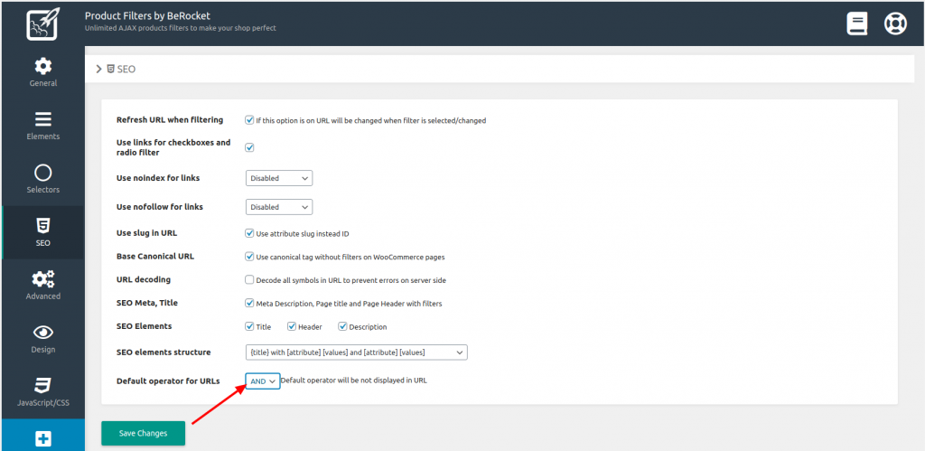 Link like WooCommerce (BETA) – when you turn on add-on, your links after filtering will look like Woocommerce.