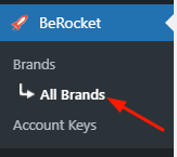- Open the Admin Bar of your site and follow BeRocket→ Brands→ All Brands.