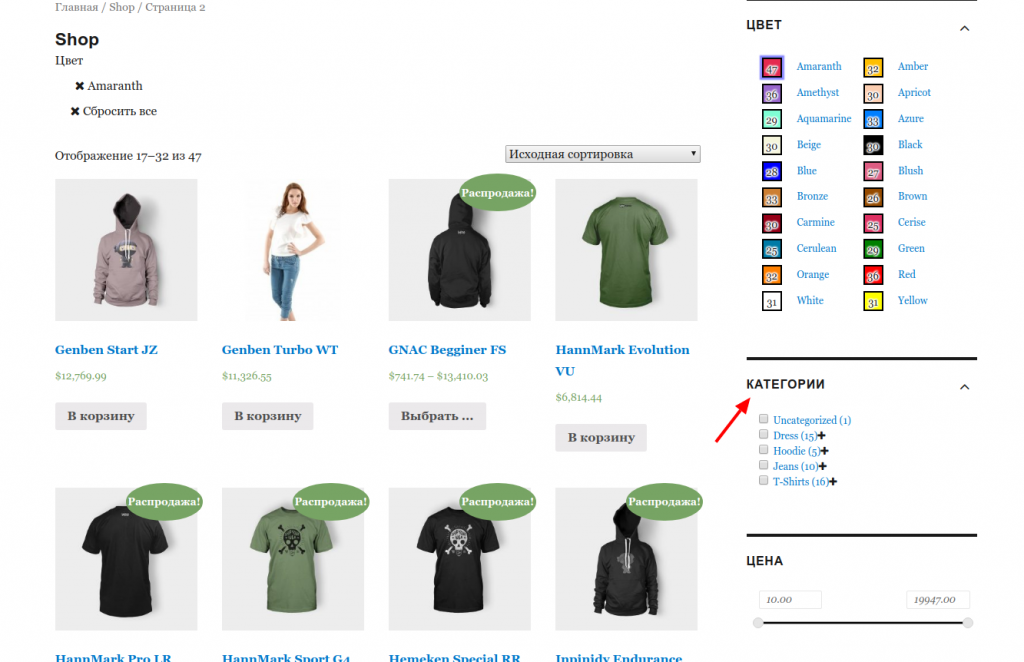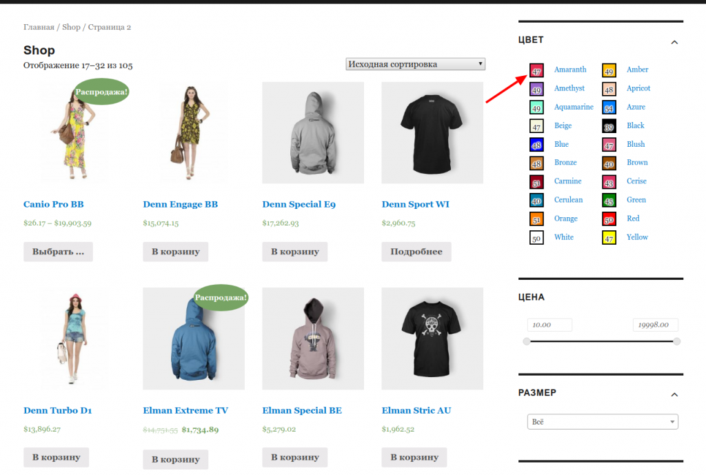 Вывод фильтров до фильтрации по выбранному атрибуту
