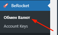 - Откройте админ-панель и проследуйте BeRocket→ Обмен Валют.