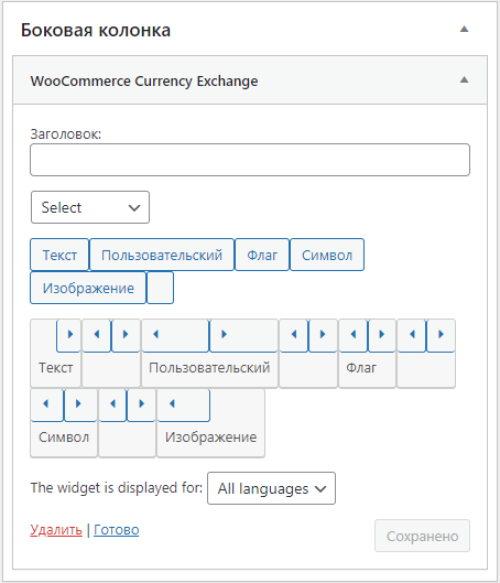 Тип информации, представленный текстом; язык может быть выбран в виджете или шорткоде.