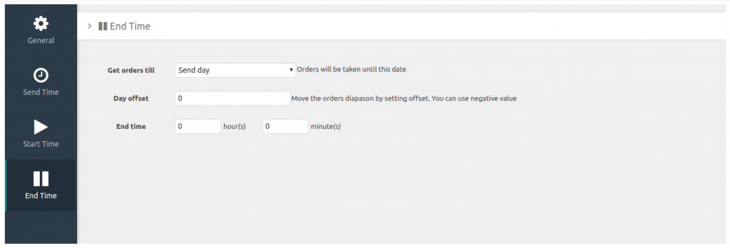 - Смещение последней даты – смещение даты окончания отправки
