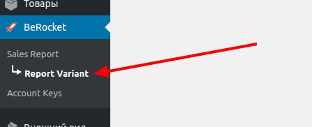 - Откройте админ-панель вашего сайта и проследуйте BeRocket→ Sales Reports→ Report Variant.