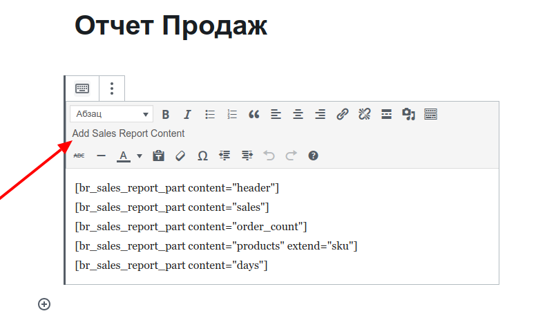 Тип контента – контент, который будет добавлен в отчет о продажах